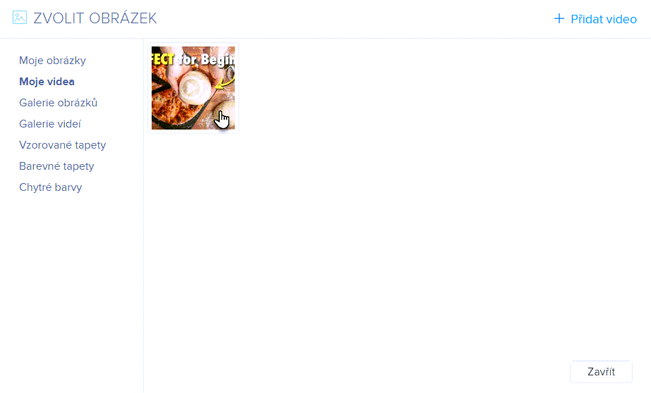 TIP: V editoru se video přehraje jednou, ale v publikované verzi se bude přehrávat ve smyčce stále dokola (bez zvuku).