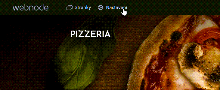 1. Pokud chcete vložit stejný obrázek pro celý web stačí nastavení provést jednou v rámci nastavení hlavičky celého webu. Klikněte v editoru vlevo nahoře na Nastavení.