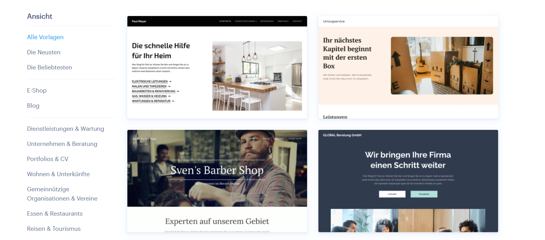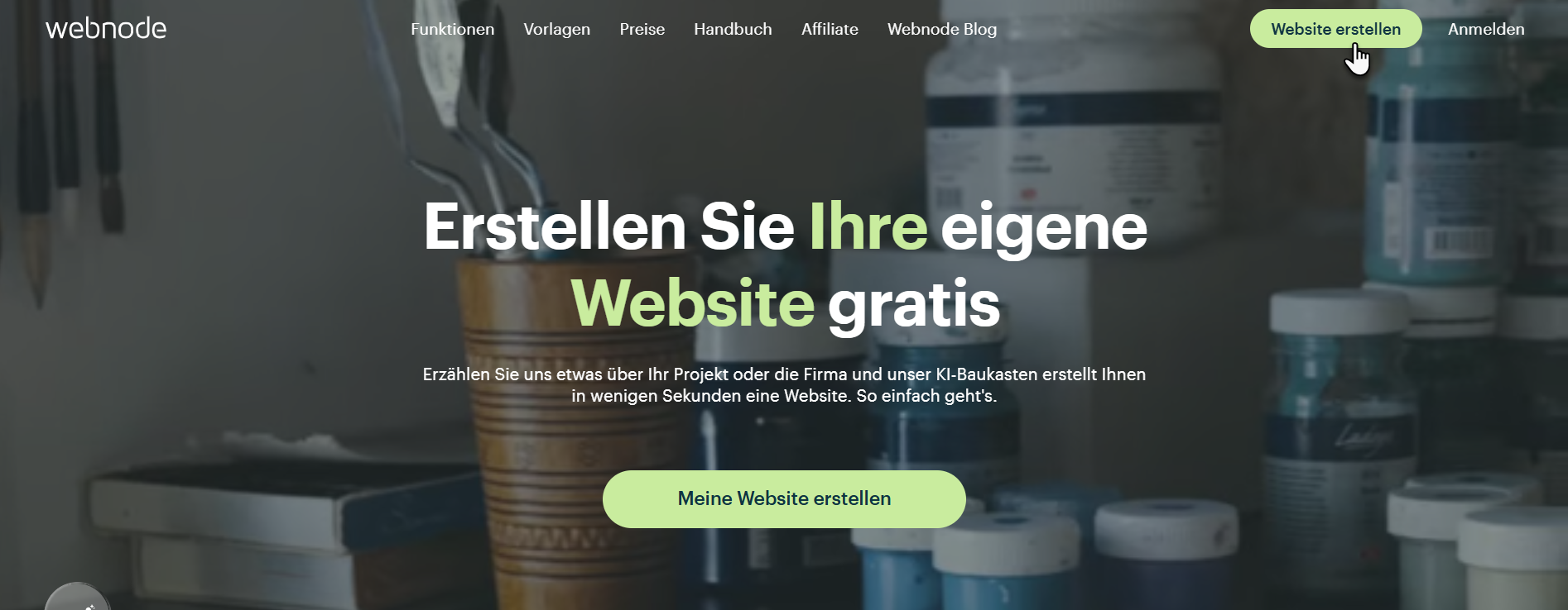 1. Klicken Sie auf unserem Portal auf Website erstellen.