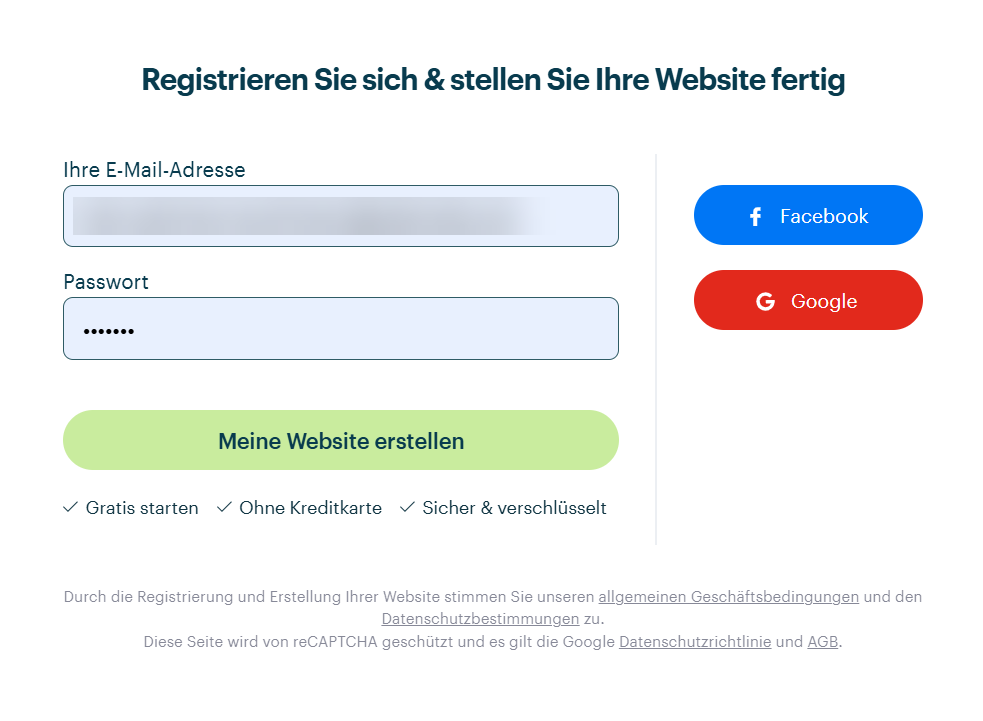 3. Registrieren Sie Ihr Konto. Wenn Sie bereits ein Konto haben, geben Sie Ihre Anmeldedaten ein. Klicken Sie auf Meine Website erstellen.