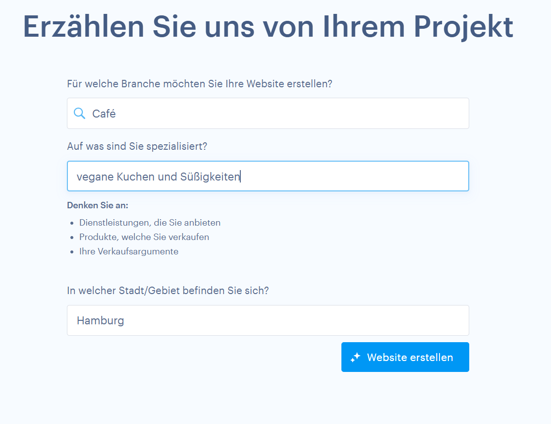 4. Beschreiben Sie Ihre Website und klicken Sie auf Meine Website erstellen.