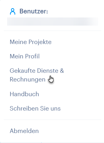 2. Alternativ können Sie auch auf den Abschnitt Gekaufte Dienste und Abrechnung im Menü (das kleine Profilsymbol) in der oberen rechten Ecke klicken.