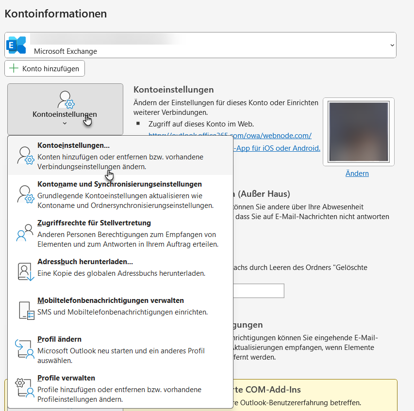 2. Klicken Sie auf Kontoeinstellungen und dann erneut auf Kontoeinstellungen