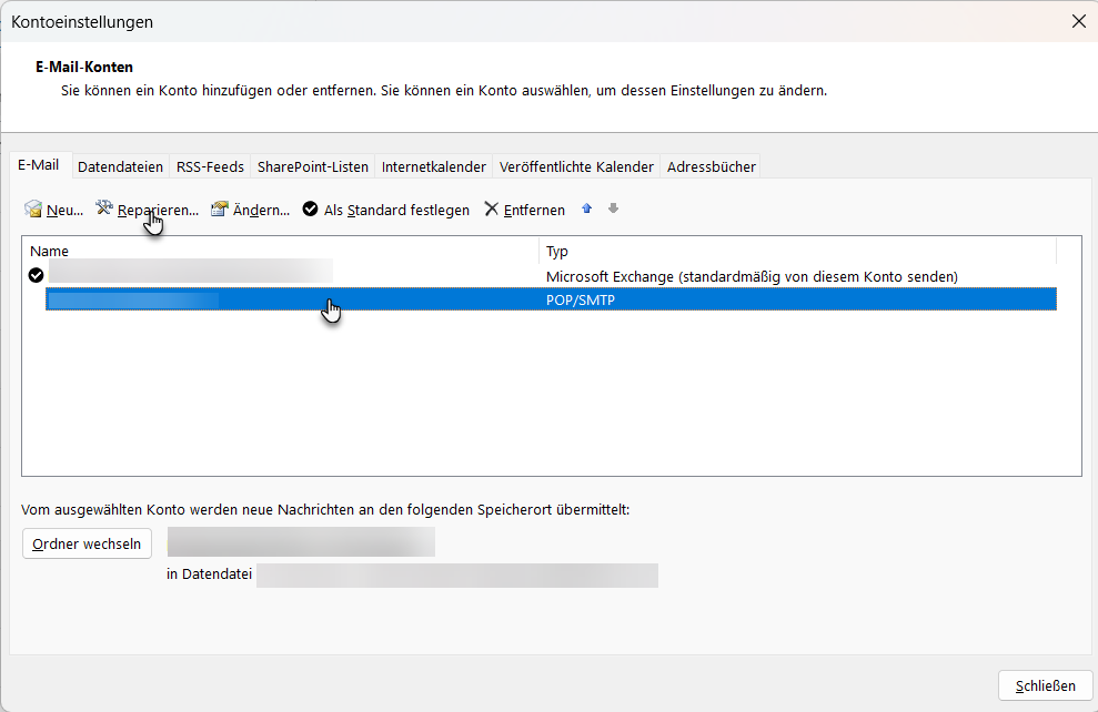 3. Wählen Sie Ihr Konto aus und klicken Sie auf die Schaltfläche Reparieren