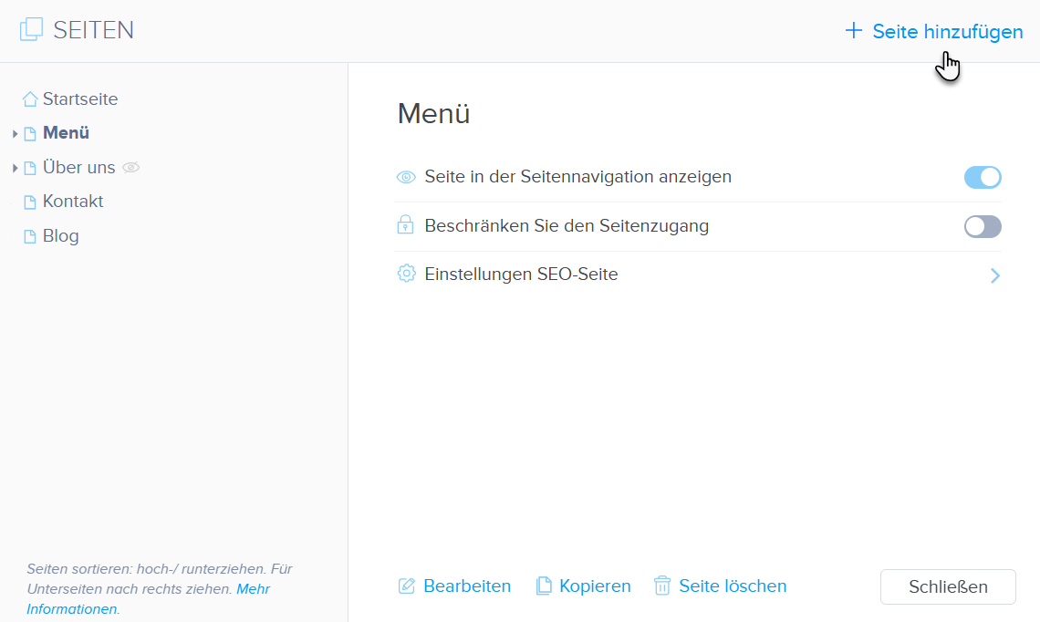 TIPP: Sie können den Seitennamen und die URL gemäß dieser Anleitung ändern.