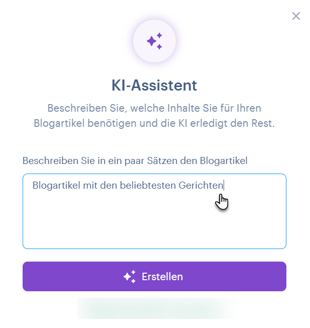 Die Funktion zum Erstellen von Blogeinträge mit KI ist in den Premium-Paketen Standard, Profi und Business verfügbar.