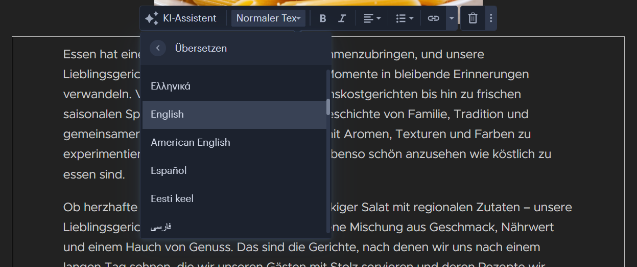 In dieser Anleitung erfahren Sie, wie Sie vorhandene Texte im Webnode-Editor in andere Sprachen übersetzen können. Dies ist eine zuverlässige und schnelle Lösung für mehrsprachige Websites, ohne dass ein externer Seitenübersetzer erforderlich ist.