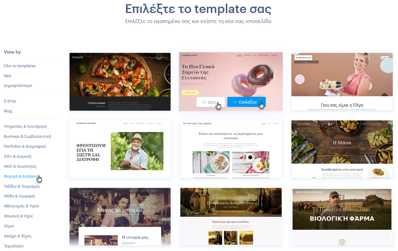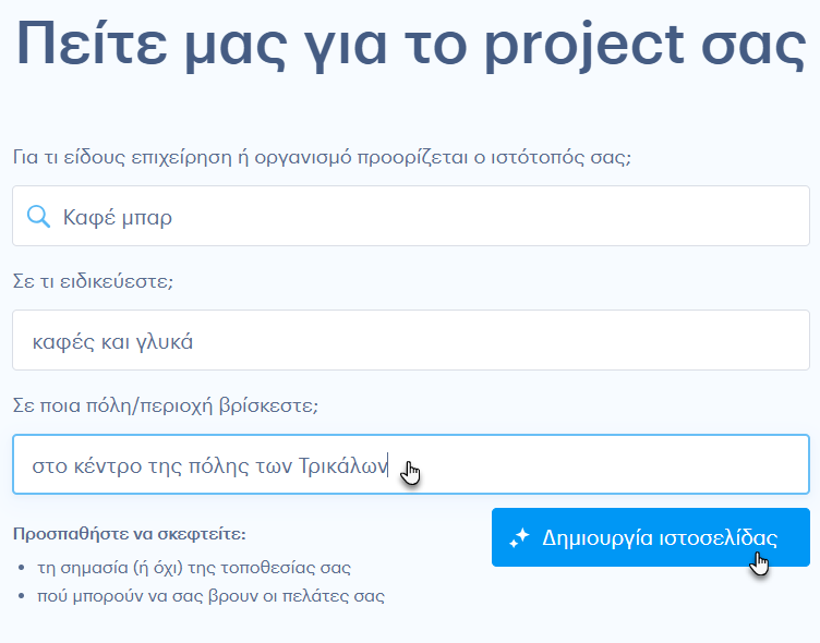 2. Περιγράψτε το είδος της ιστοσελίδας που θέλετε να δημιουργήσετε ή επιλέξτε μία από τις προτεινόμενες κατηγορίες και κάντε κλικ στο κουμπί Δημιουργία της ιστοσελίδας μου.