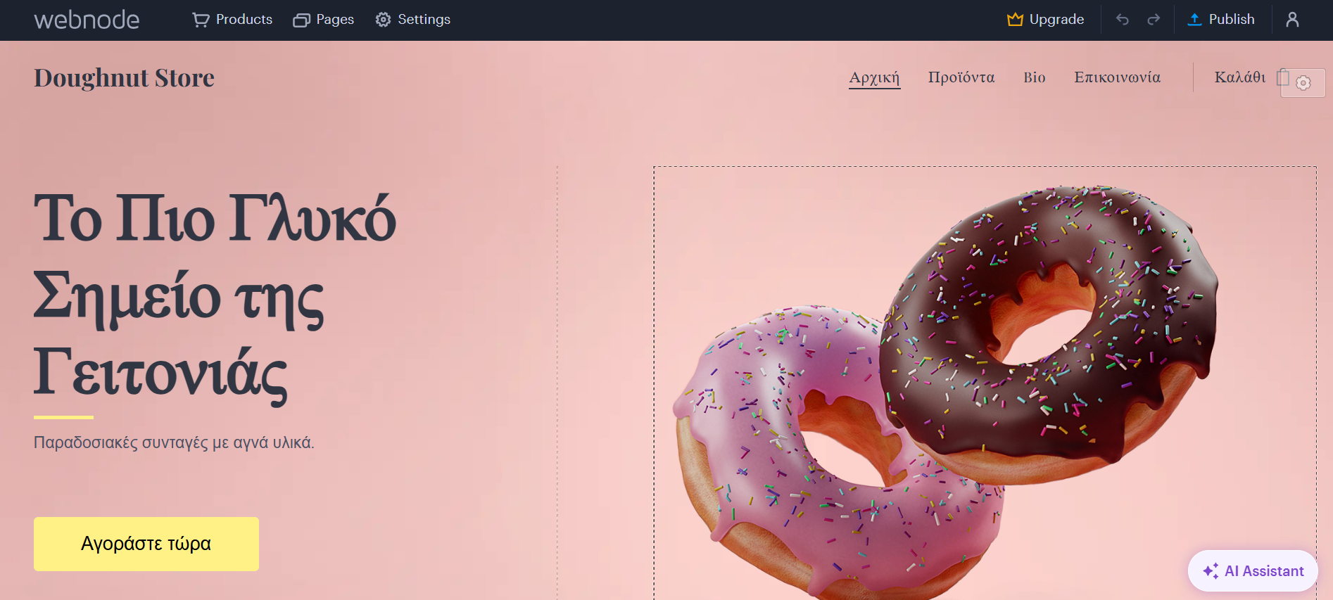 8. Είτε επιλέξετε ένα σχέδιο που έχει δημιουργηθεί με τεχνητή νοημοσύνη είτε ένα πρότυπο, ο ιστότοπός σας έχει πλέον δημιουργηθεί και είναι έτοιμος για περαιτέρω προσαρμογή.