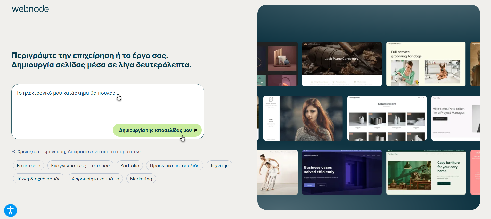 2. Περιγράψτε το είδος της ιστοσελίδας που θέλετε να δημιουργήσετε ή επιλέξτε μία από τις προτεινόμενες κατηγορίες και κάντε κλικ στο κουμπί Δημιουργία της ιστοσελίδας μου.