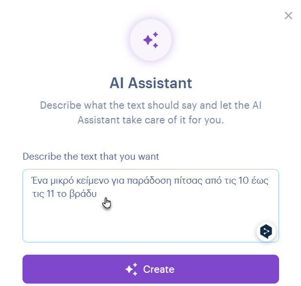 Η λειτουργία δημιουργίας κειμένου AI είναι διαθέσιμη με τα πακέτα Standard, Profi ή Business Premium.