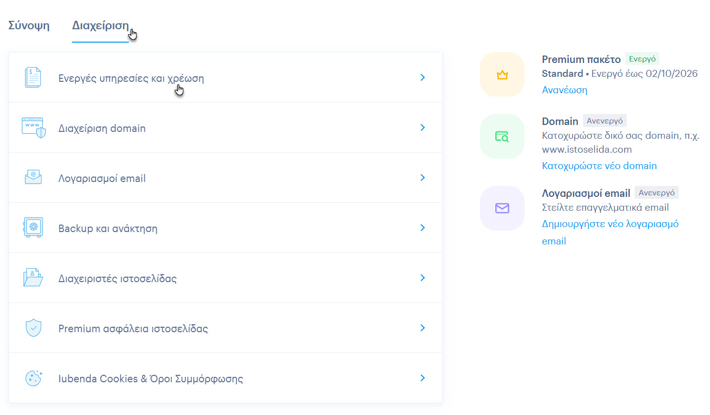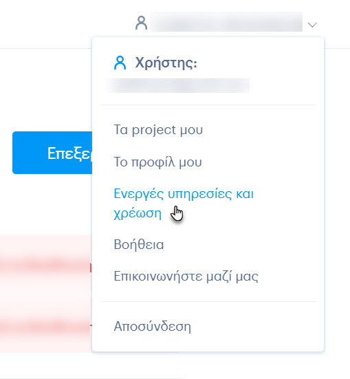 2. Εναλλακτικά, κάντε κλικ στην ενότητα Ενεργές υπηρεσίες και χρέωση στο μενού (το μικρό εικονίδιο με το ανθρωπάκι) στην επάνω δεξιά γωνία.