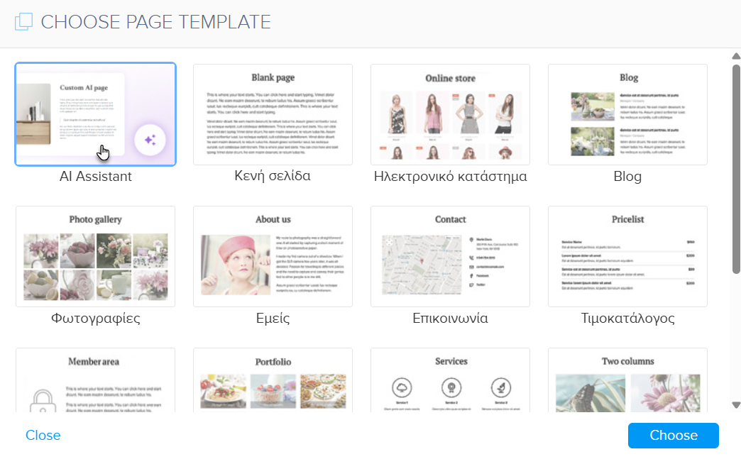 3. Επιλέξτε τον τύπο σελίδας AI Assistant.