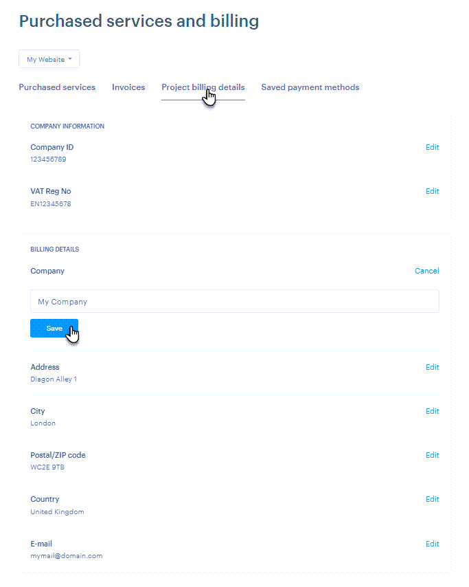 In this guide, you will learn how to edit your billing information, which appears on invoices for Webnode services.