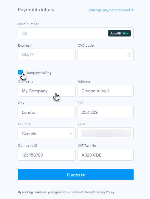 If you need to change the billing information on an already issued invoice, this can be done within 10 days from the date of issue. In this case, you need to contact our customer support.