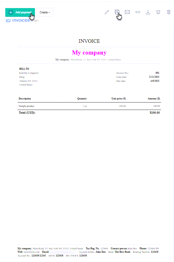 You will then see an invoice preview, where you can make additional adjustments or add payment details.