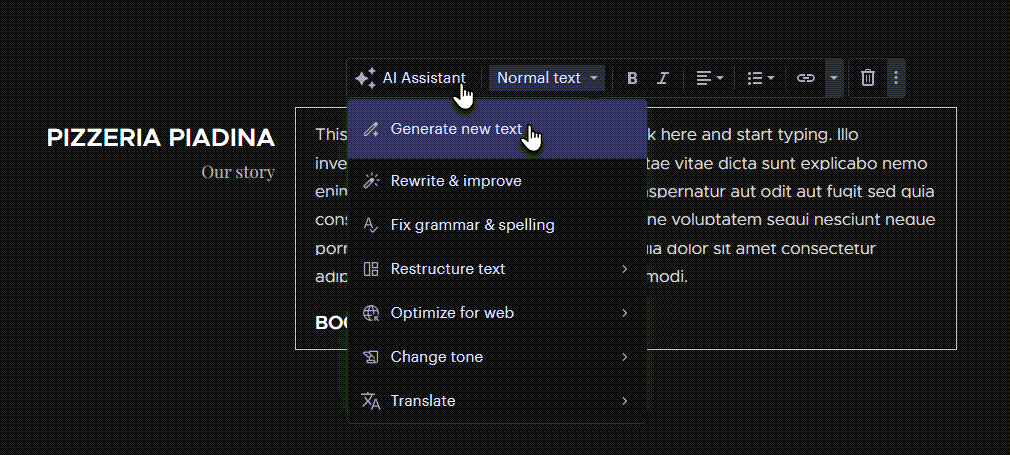 3. That’s it. The text can be edited just like any other part of your website. If you want to edit text using AI, you can follow our guide How to edit a text using the AI Assistant.