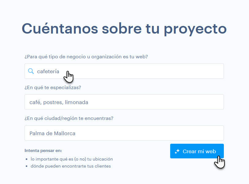 4. Describe tu web y haz clic en el botón Crear mi web.
