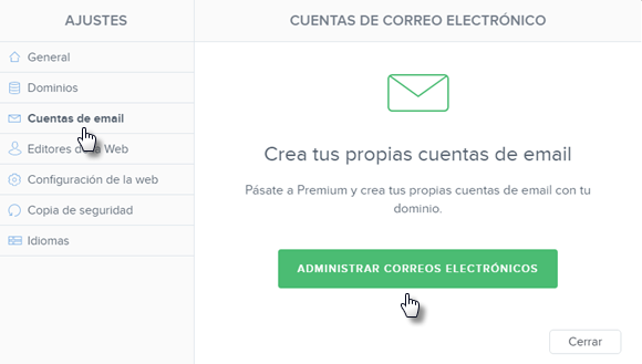 2. En Cuentas de email haz clic en Administrar correos electrónicos.