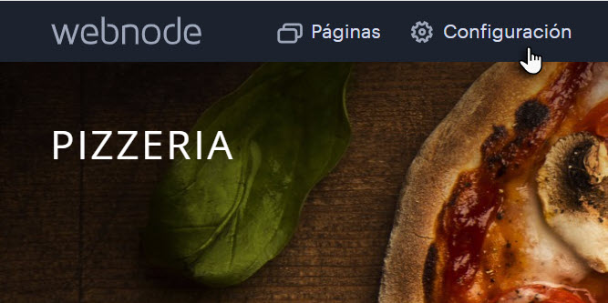1. Entra en tu cuenta desde la página principal de Webnode. Cuando estés dentro del editor de tu web, haz clic en Configuración.