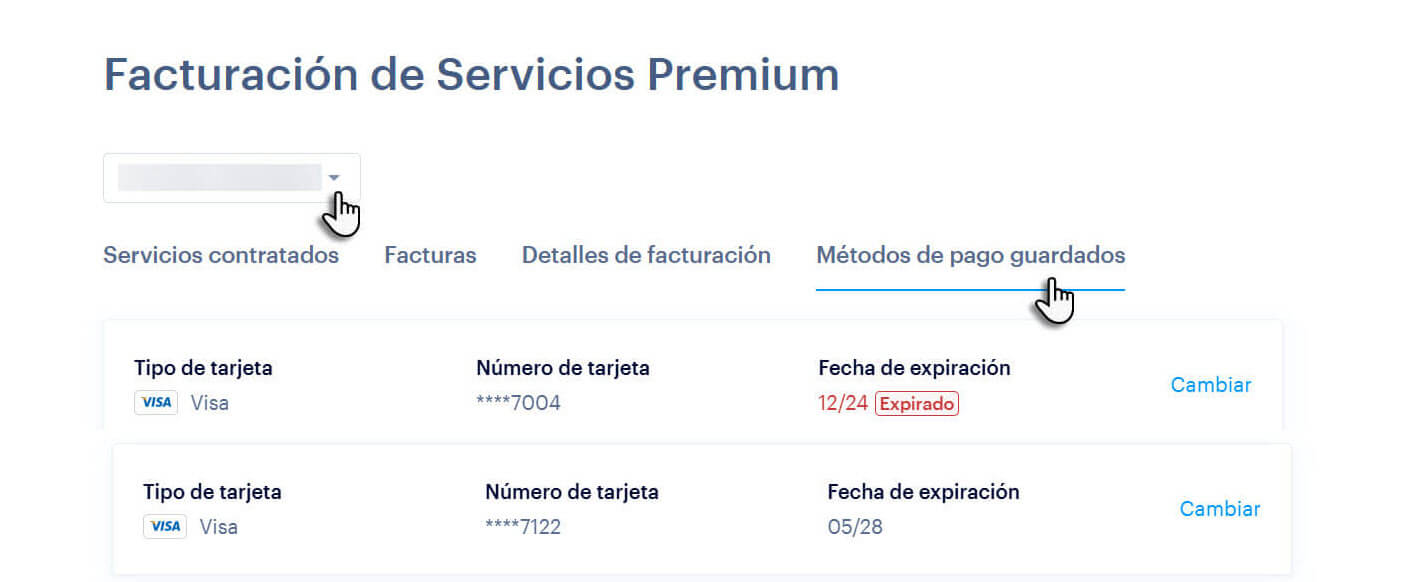 En esta guía aprenderás a cambiar tus métodos de pago guardados (tarjetas de pago). Debes actualizar cada tarjeta de pago por separado para cada proyecto, incluso si utilizaste la misma tarjeta en varios proyectos. Si cambias una tarjeta, la actualización se aplicará a todas las renovaciones automáticas de ese proyecto que se pagaron con ella. Solo se puede cambiar una tarjeta si el proyecto tiene una renovación automática activa.
