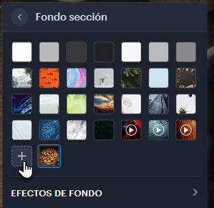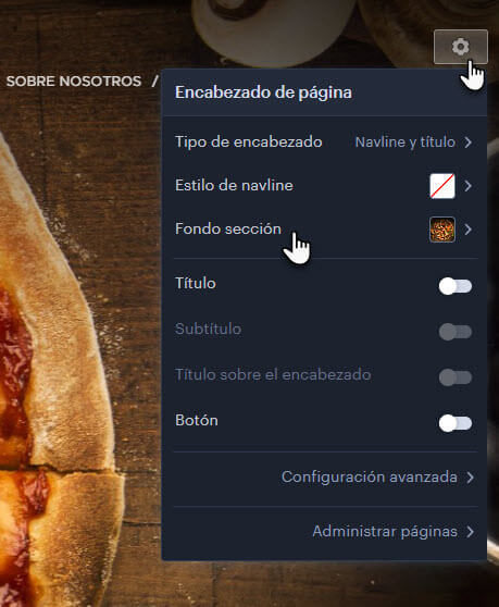 1. En el encabezado de la página o en la sección, haz clic en el icono de la rueda dentada y selecciona Fondo sección.