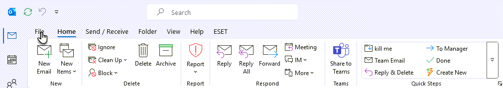 1. Avaa Microsoft Outlook ja valitse ylävalikosta Tiedosto-välilehti.