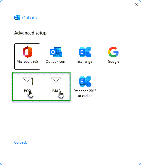 4. Valitse POP tai IMAP. Ero POP:n ja IMAP:n välillä selitetään ohjeen lopussa.