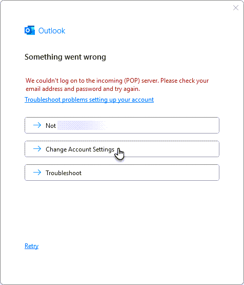6. Lyhyen latausajan jälkeen näet ilmoituksen Jotain meni pieleen. Klikkaa Muuta tilin asetuksia.