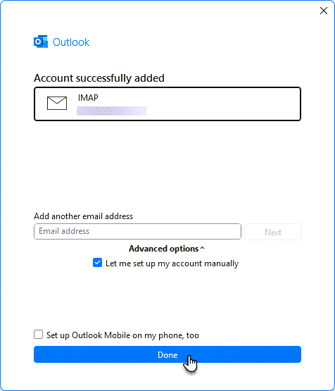9. Tilisi on nyt lisätty Outlookiin. Klikkaa Valmis.