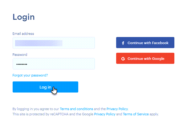 2. Kirjaudu sisään sähköpostiosoitteella, jonka loit verkkotunnuksellesi Webnodessa, esimerkiksi info@domain.fi. Älä käytä sitä sähköpostiosoitetta, jolla muokkaat sivustoasi – kyseessä ovat kaksi eri tiliä.