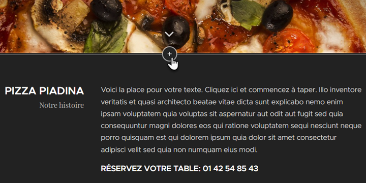 1. Passez votre souris sur la zone de contenu d'une page pour afficher le bouton plus permettant d'ajouter une nouvelle section.