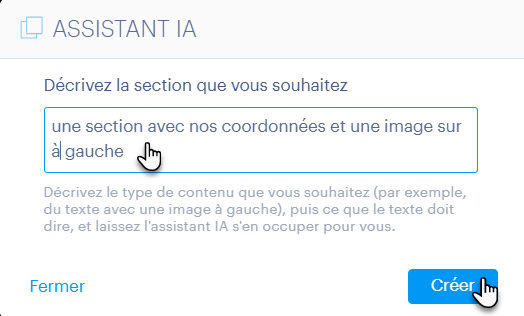 3. Décrivez la section à créer. Vous pouvez aussi entrer directement le texte que vous voulez inclure dans la section.
