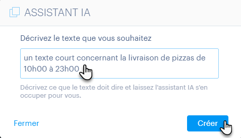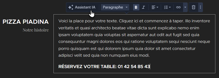 CONSEIL : Vous pouvez aussi utiliser l'IA pour créer des sections complètes. Pour en savoir plus, consultez le guide Comment créer une section avec l'Assistant IA.