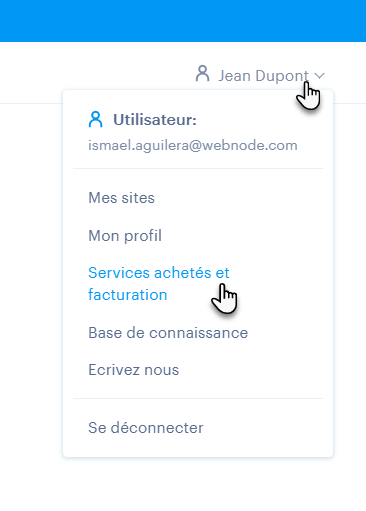 Services achetés et Facturation : Vous y trouverez les factures émises disponibles au téléchargement, ainsi que le statut de vos services premium actuels.