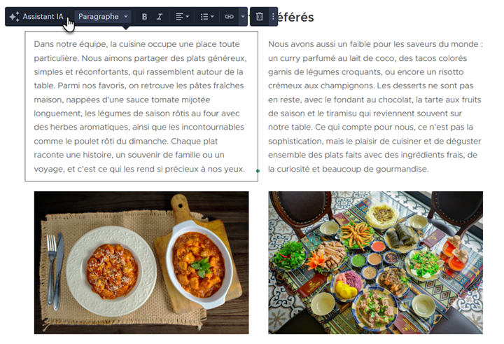 1. Dans l'éditeur, cliquez sur un champ de texte et sélectionnez l'option Assistant IA.