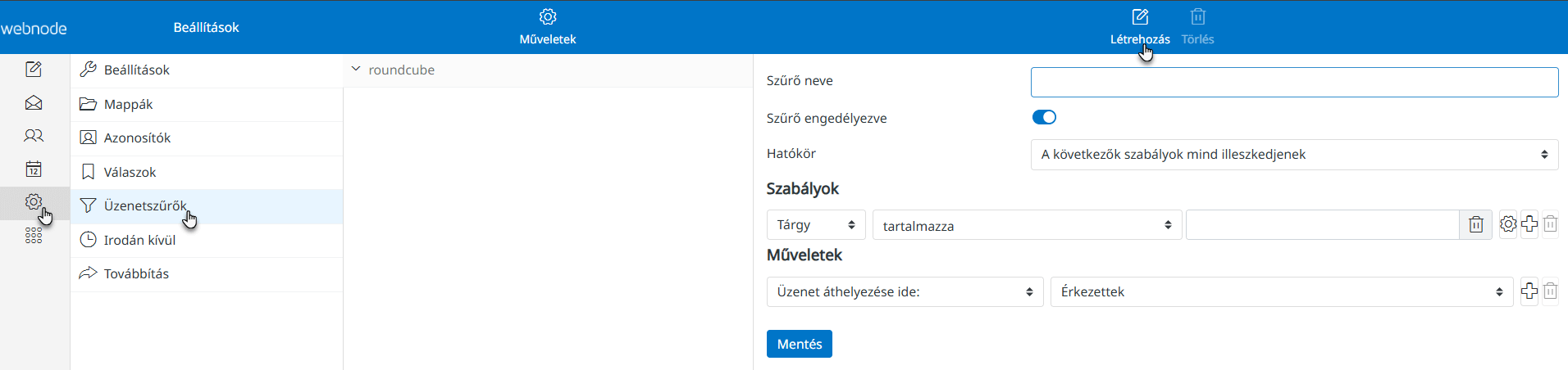Ebben az útmutatóban megtudhatod, hogyan állíthatsz be szűrőket az új Webnode webmail felületén. A szűrők olyan szabályok, amelyek szerint a postaládád működik, például az üzenetek mappákba rendezése, e-mailek továbbítása, jelölések hozzáadása és még sok más.