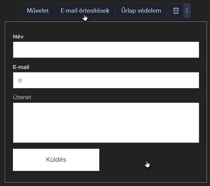 Ha még nem adtál hozzá űrlapot, kövesd a Hogyan illessz be kapcsolati űrlapot című útmutatót. Az űrlapok használatáról részletesebben Az űrlapok kezelése című leírásban olvashatsz.