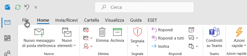 1. Apri Outlook e seleziona la scheda File dal menu in alto.
