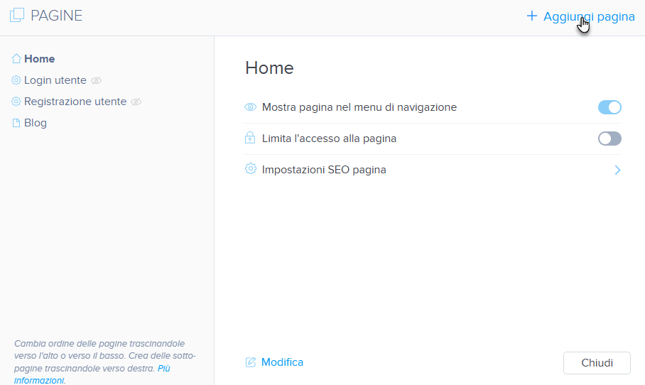 SUGGERIMENTO: puoi modificare il nome della pagina e il suo URL seguendo la guida Come modificare il nome di una pagina.