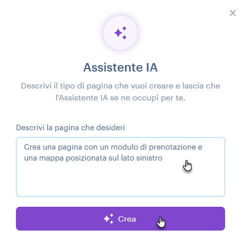 SUGGERIMENTO: puoi anche utilizzare l’intelligenza artificiale per creare sezioni di pagina o testi. Scopri di più nelle guide Come creare una sezione utilizzando l’Assistente IA e Come creare un testo usando l’Assistente IA.