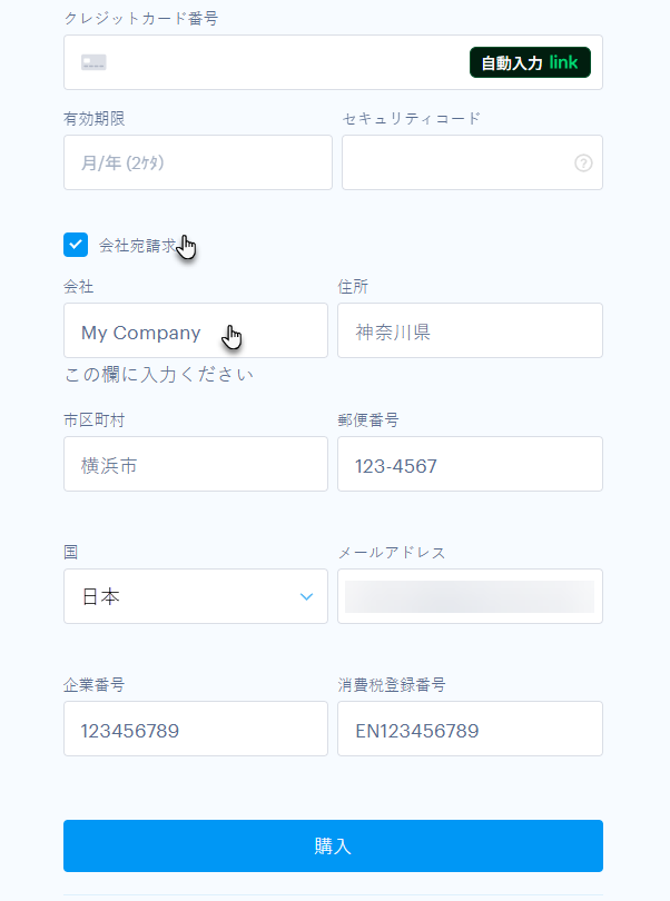 この方法では今後の購入時に適応される情報を入力できます。