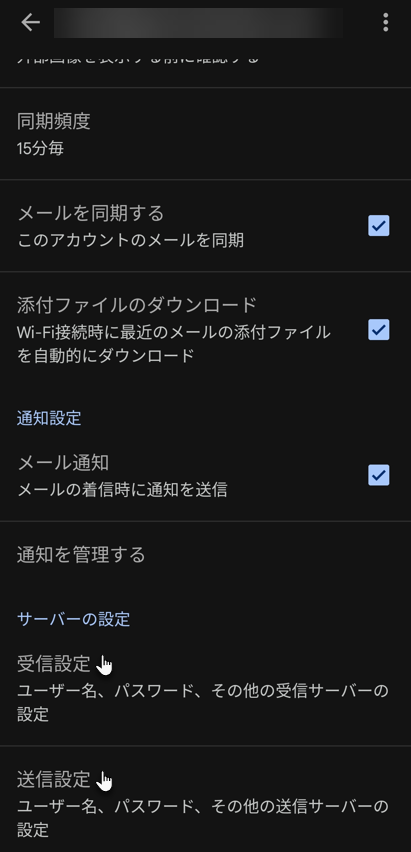 ヒント:他のメールクライアントの設定更新方法については、ヘルプセンターの「新しいメールサーバー用にメールクライアントの設定を更新する」をご参照ください。そこで説明されている値は、ほとんどの他のメールクライアントにも有効で、古いバージョンのAndroidでも使用できます。