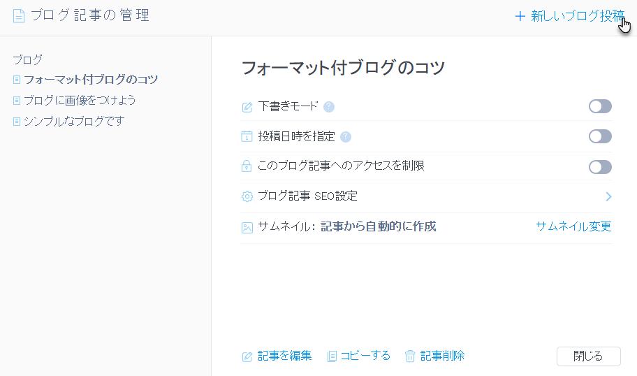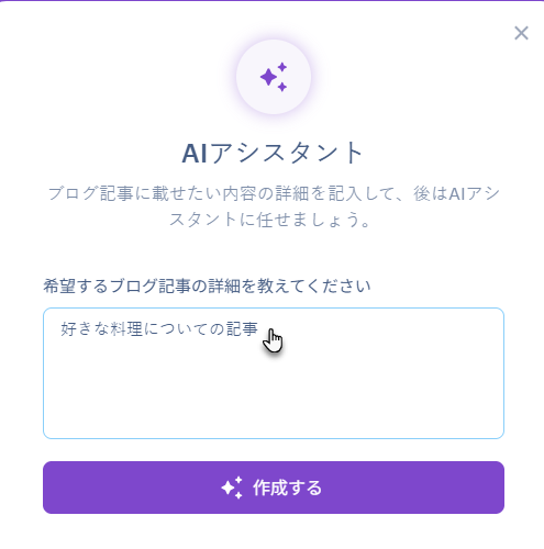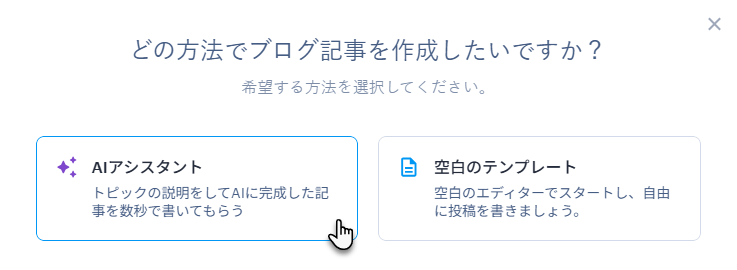 AIアシスタントでのブログ記事作成機能はStandard、Pro、またはBusiniessプレミアムプランでご利用いただける機能です。