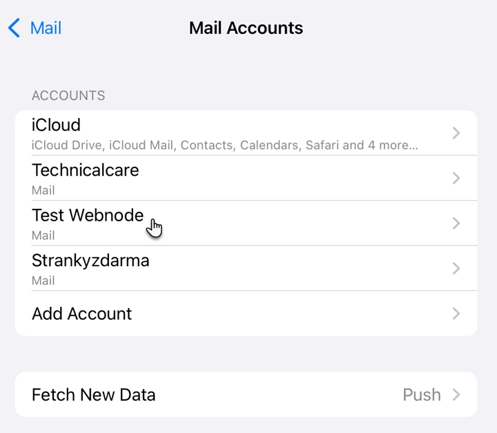 2. Trykk på Mail Accounts.