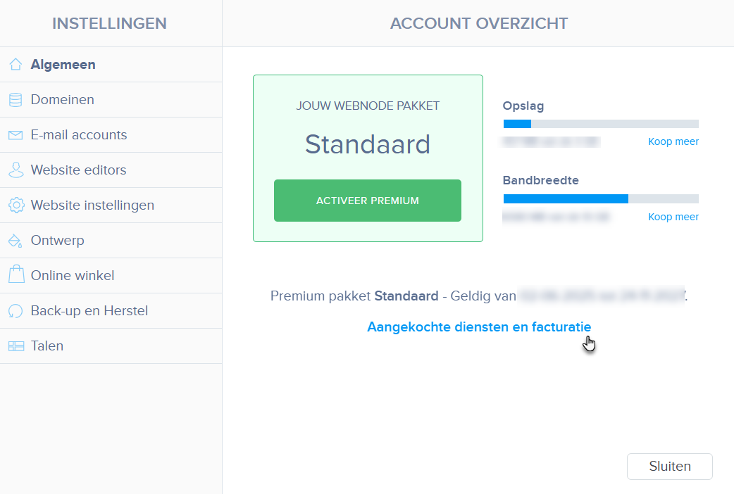 Meer informatie vind je in de artikelen Hoe kan ik mijn Premium pakket verlengen of upgraden en Hoe kan ik mijn domein hernieuwen.