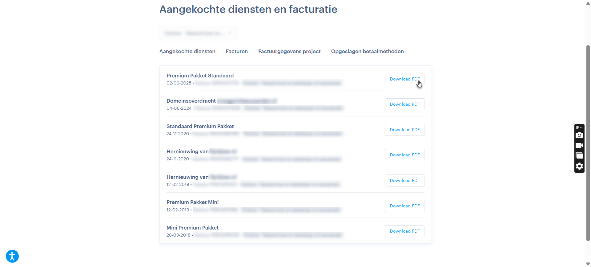 TIP: Wil je een factuur (betalingsgegevens) ontvangen voor het verlengen van je domein of premiumdiensten? Log dan in op je website. Je kunt de diensten rechtstreeks vanuit de administratie van je project verlengen.