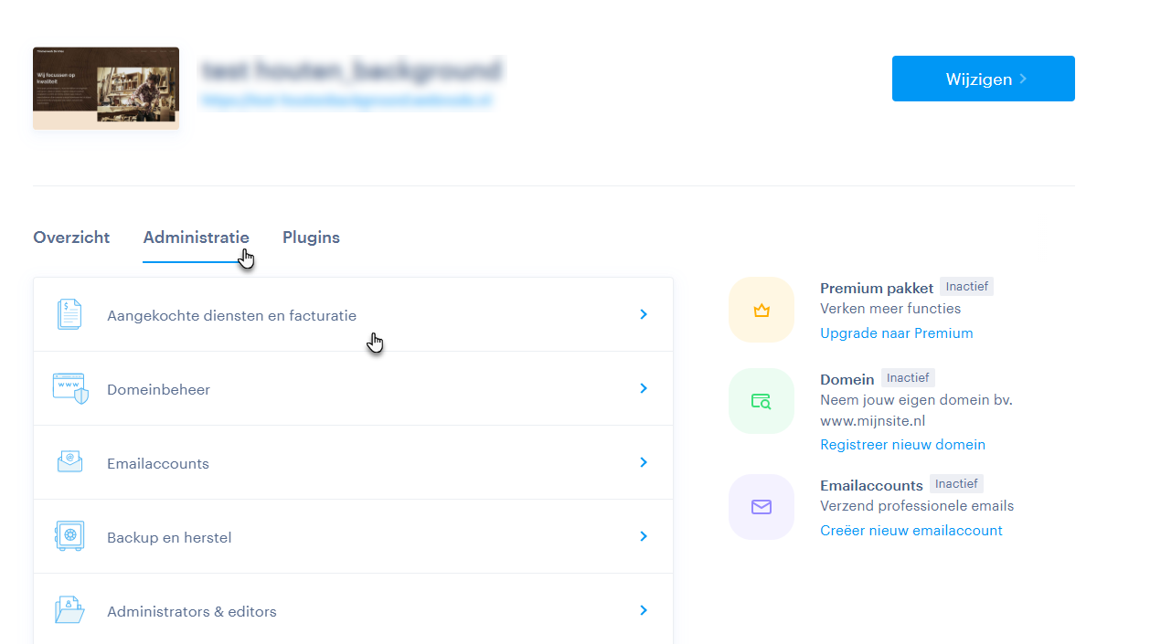 Als onderdeel van de pakketverhuizing worden altijd alle domeinen die bij het project horen automatisch meeverhuisd. In het oorspronkelijke project worden Premium-diensten, zoals e-mailboxen, uitgebreide verkeersstatistieken en de functionaliteit voor een online winkel, uitgeschakeld. De gegevens in het oorspronkelijke project worden de dag na de verhuizing verwijderd tot aan de limiet van de gratis versie. Als u de gegevens wilt behouden of de Premium-functies opnieuw wilt activeren, dien je het Premium-pakket opnieuw aan te schaffen voor het oorspronkelijke project.