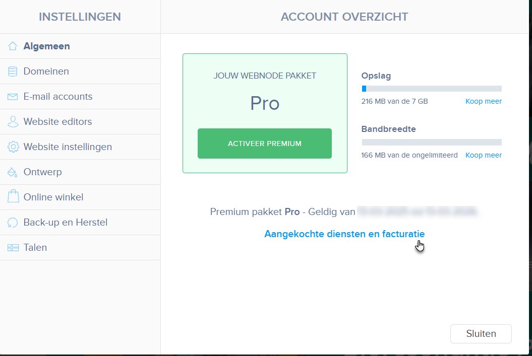 3. Klik vervolgens op het tabblad Algemeen, gevolgd door Aangekochte diensten en facturatie.