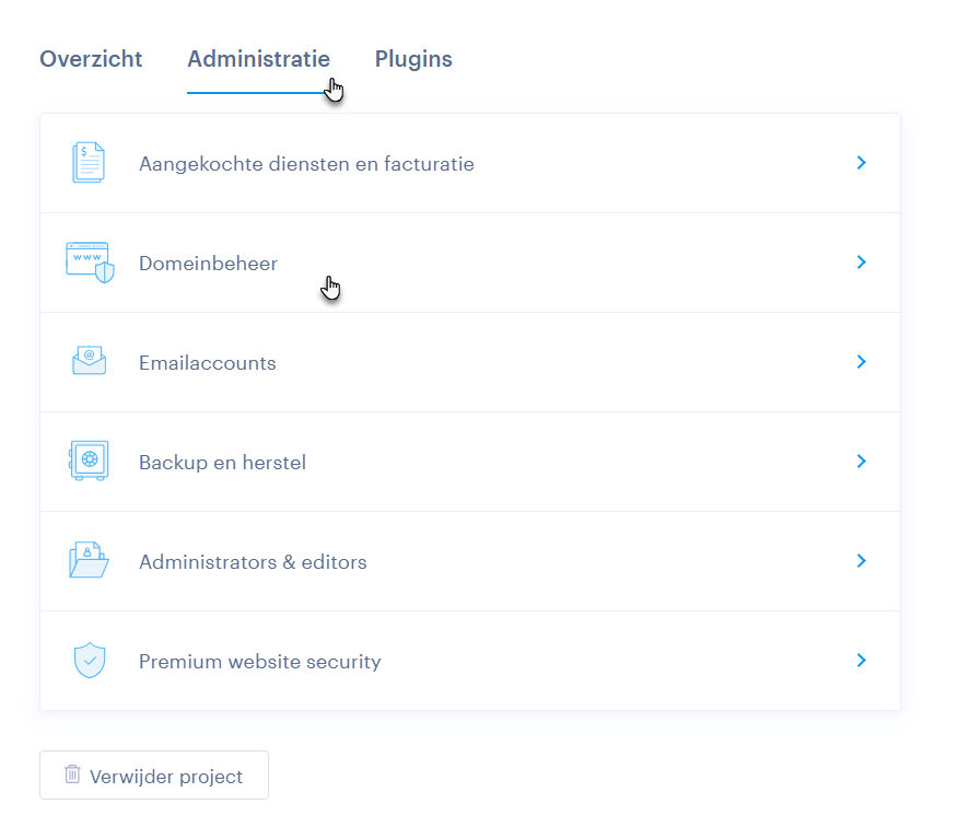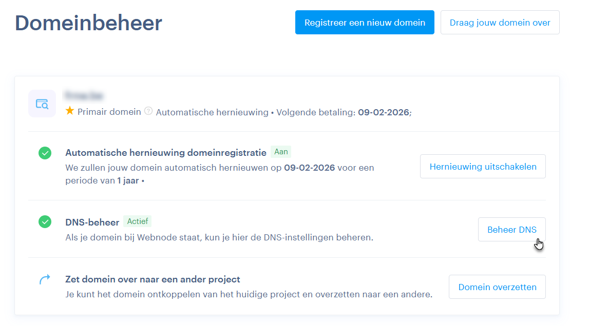 Tip: Je kunt je eigen domein bij ons registreren of het onder ons beheer overdragen. Zie voor meer informatie de handleidingen Hoe kan ik een domein registreren en Hoe kan ik een domein overdragen.